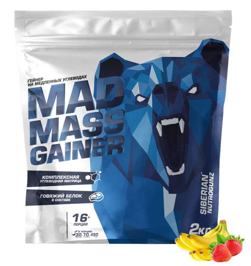 MadMassGainer - гейнер на основе комплексной углеводной матрицы, с большим содержанием белка и запатентованным комплексом ферментов Carbogen. Продукт, свободно конкурирующий с топовыми гейнерами западных брендов.Комплексная углеводная матрица включает в себя источники сложных и простых углеводов в соотношении 2:1. Порядка 45% состава гейнера - перемолотая обдирная рожь, фактически - цельнозерновое сырье. Используемая нами перемолотая рожь обладает низким гликемическим индексом, комплексом митаминов и микроэлементов, клетчаткой. 25% состава гейнера - мальтодекстрин, высококачественный быстрый углевод. Его использование обусловлено универсальностью продукта.