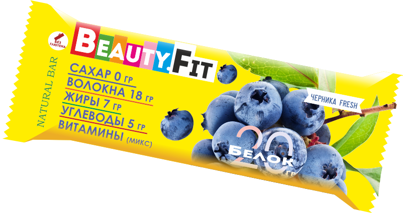 BeautyFit Натуральные низкоуглеводные батончики с протеином (13шт в уп) Штучно 60 г Черника Фреш до 08.24