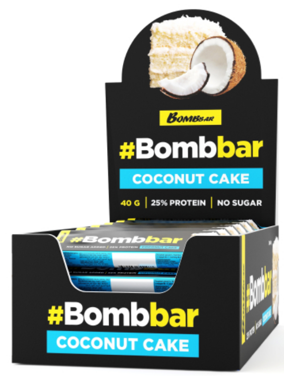 Bombbar Батончик глазированный (30 шт в уп) Упаковка 40 г Кокосовый торт до 14.11.2025
