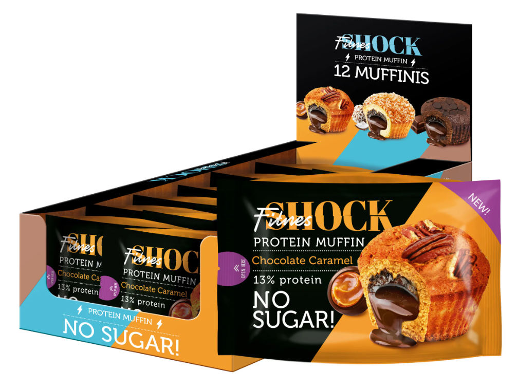 Уценка FitnesSHOCK Маффин с начинкой (12 шт в уп) Упаковка 50 г Шоколадная карамель до 02.24