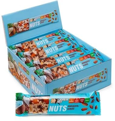 Главная / Каталог / Proteinrex без НДС / Proteinrex Батончик ореховый протеиновый 18% Nuts (12 шт в уп) 40 г Миндаль-кокос до 08.24