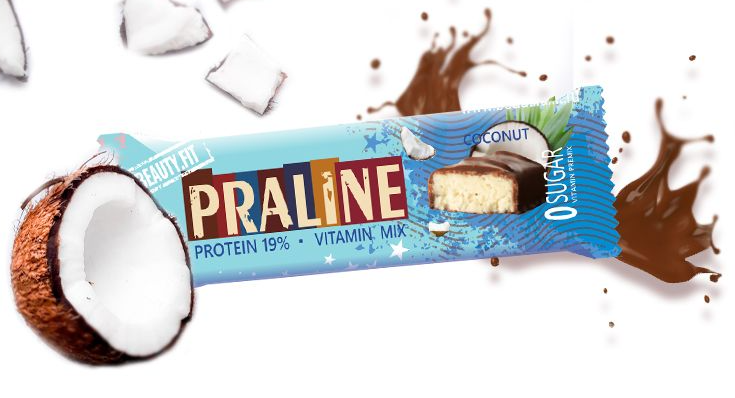 Уценка BeautyFit Батончик Пралине Кранч (20шт в уп) 50 г Кокос в шоколаде до 06.24