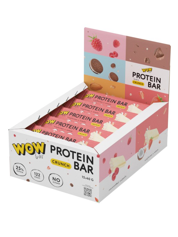 Prime Kraft Батончик с содержанием протеина WOWBAR CRUNCH (15шт в уп) 40 г "Клубника и кокос" до 04.12.24 без НДС