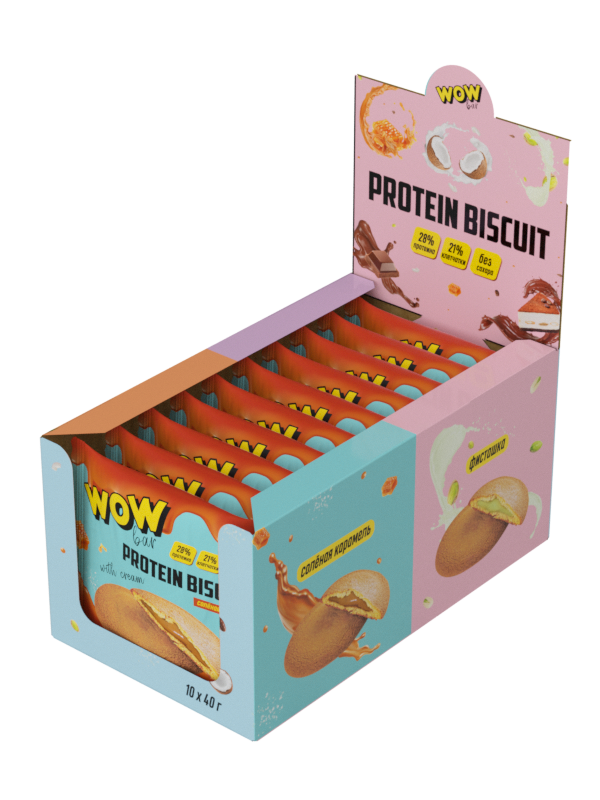 Prime Kraft Протеиновое печенье «WOWBAR PROTEIN BISCUIT» с начинкой (10шт в уп) 40 г со вкусом "Соленая карамель" до 11.09.24 без НДС