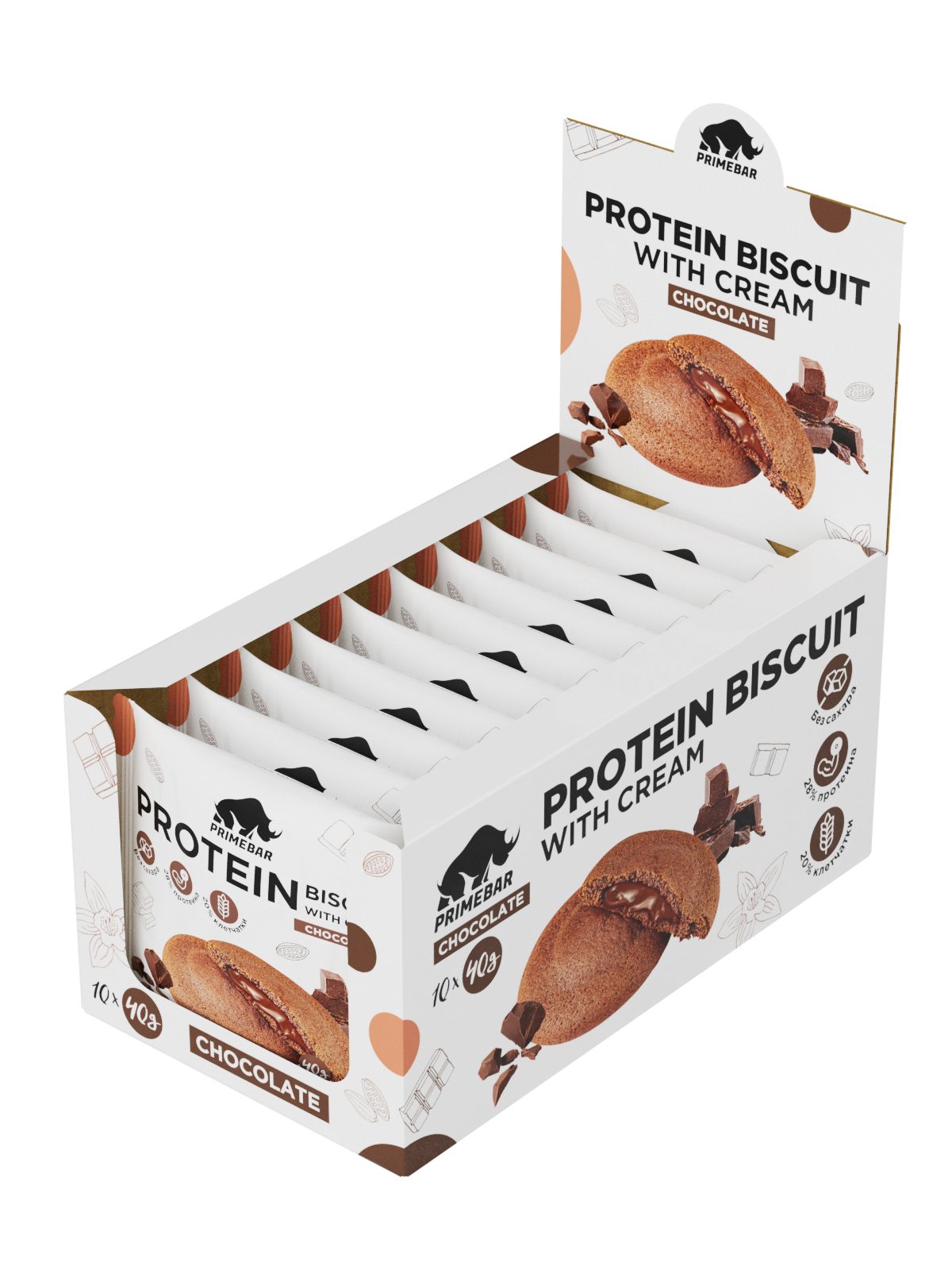 Уценка Prime Kraft Протеиновое печенье «PRIMEBAR PROTEIN BISCUIT» (10шт в уп) Упаковка Шоколад 40 г до 03.24 без НДС