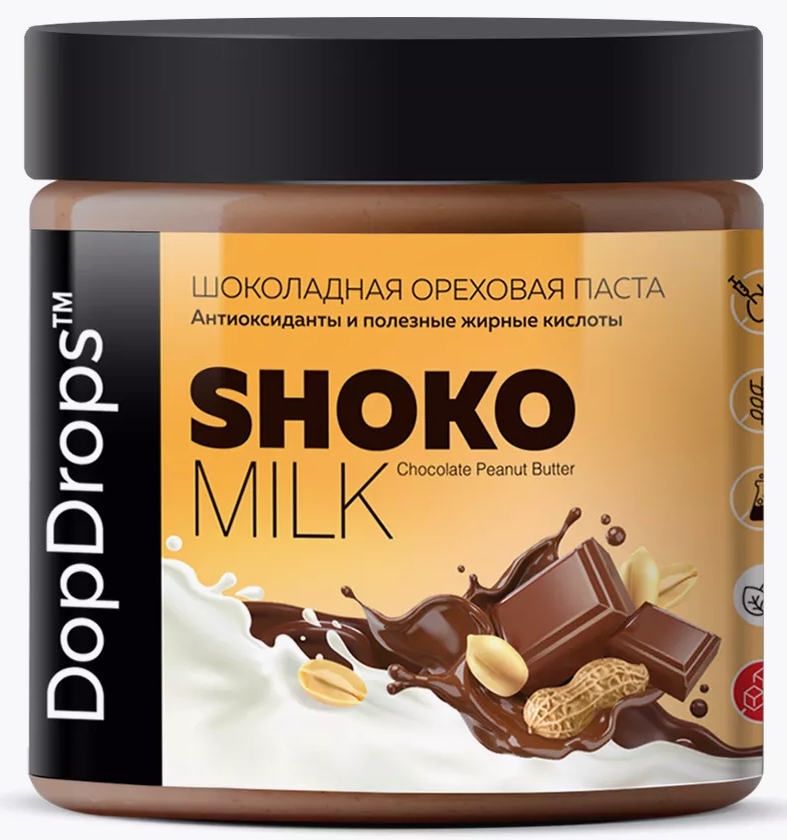 DopDrops Паста ореховая натуральная "Shoko Milk Peanut Butter" 250 г подтекает масло из под крышки без НДС