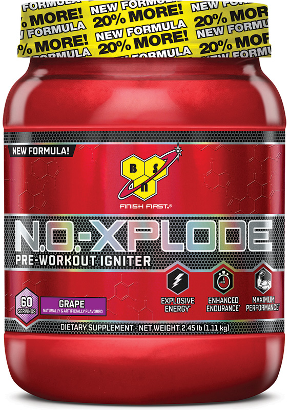 NO-Xplode 3.3 – новая формула предтренировочного комплекса от компании BSN. В отличие от предыдущей версии, продукт отличается более высокой концентрацией активных компонентов при уменьшенном объеме порции, характеризуется улучшенным действием на фокусировку и концентрацию, но позволяет избежать гиперстимуляции ЦНС и тремора. Благодаря специальному газированию порошковой смеси повышается скорость усвоения BSN NO-Xplode 3.3, и он начинает работать спустя 30-40 минут после попадания в организм.