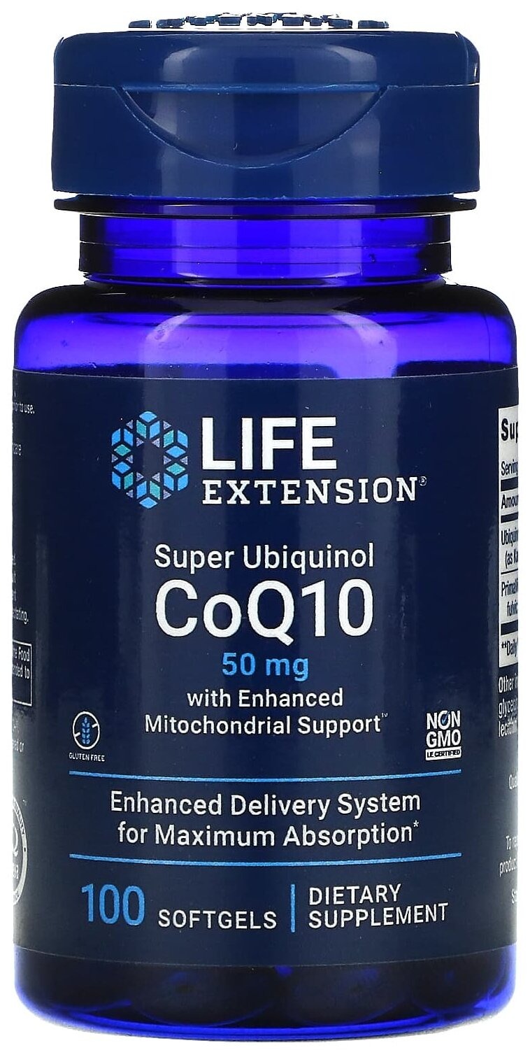 LIFE Extension Super Ubiquinol CoQ10 with Enhanced Mitochondrial Support™ 50 mg, 100 softgels до 10.2025