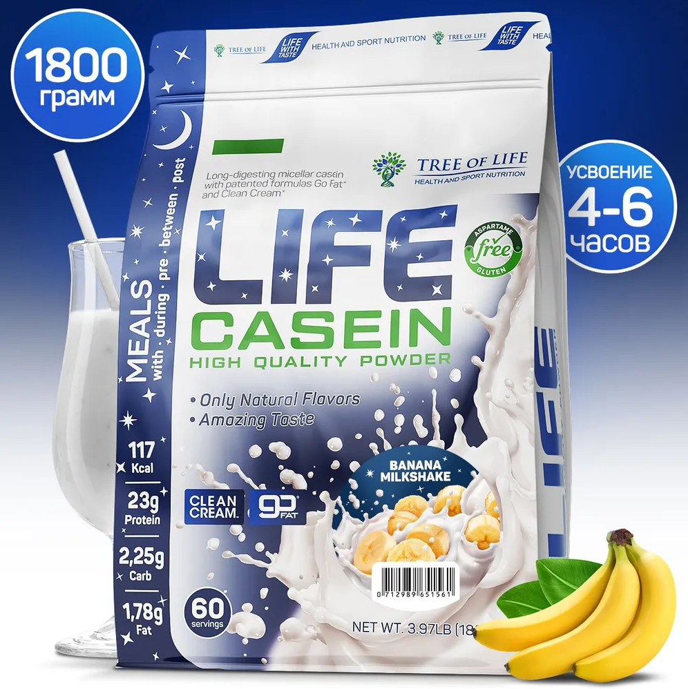 Tree of Life LIFE Casein 1800 г Banana Milkshake / 2027-06-01 дырочка заклеена