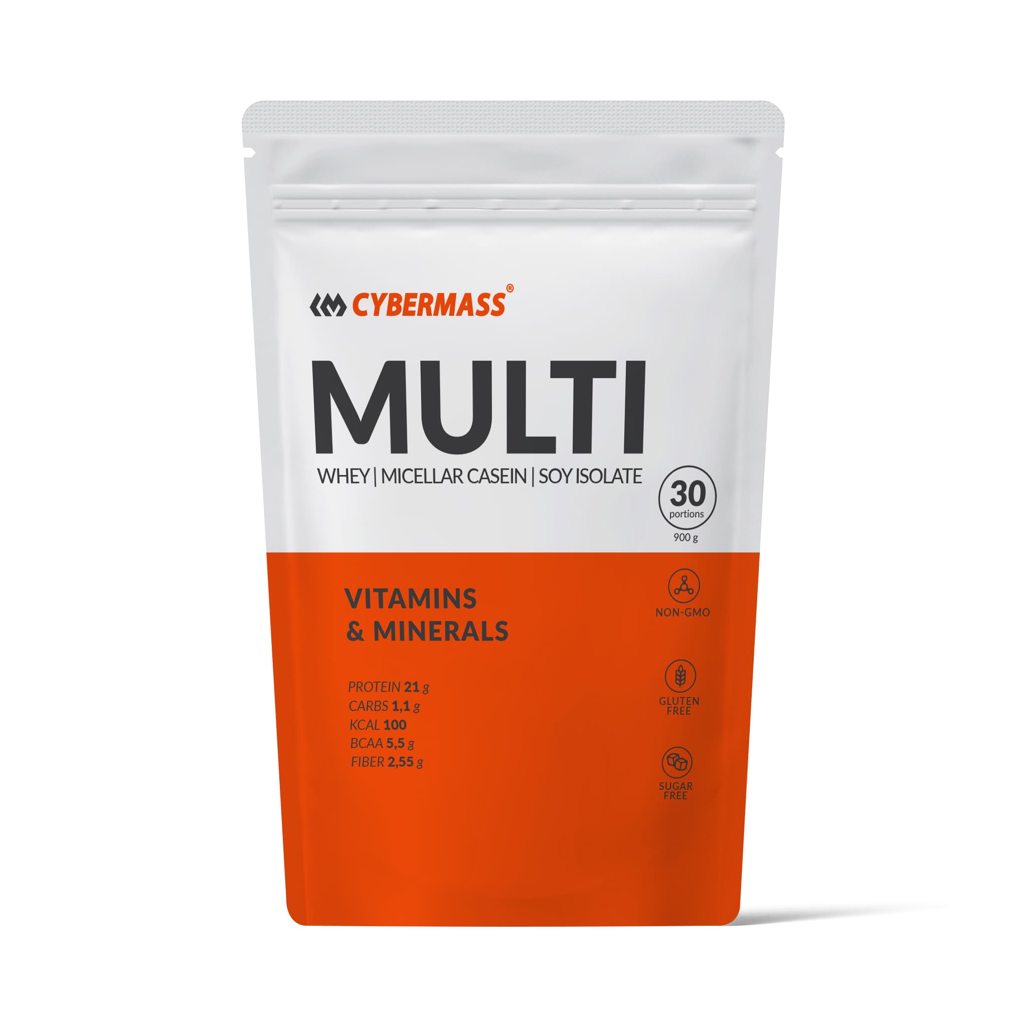 CYBERMASS MULTI COMPLEX (Whey, Micellar casein, Soy isolate) обладает сбалансированной 3-х компонентной белковой матрицей премиум-класса с различной скоростью усвоения, созданной с учетом современных тенденций и потребностей в обеспечении организма аминокислотами. Благодаря сочетанию быстро и медленно-усваиваемых белков Multi complex начинает усваиваться уже через час после приема и действует до 8 часов, питая и насыщая ваши мышцы. Кроме того, в состав включен витаминный и минеральный комплексы, а также растворимые пищевые волокна (пребиотик), что делает этот продукт идеальным для достижения поставленных результатов. Состав