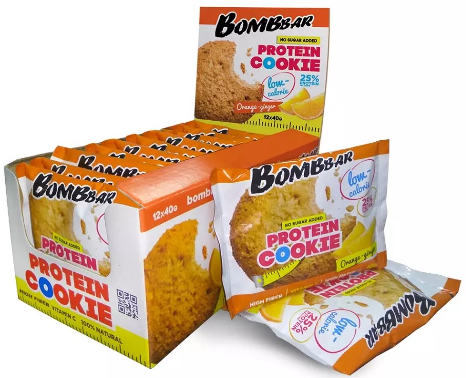Bombbar Протеиновое печенье (12 шт шоубокс) Упаковка 40 г апельсин-имбирь до 12.11.2025
