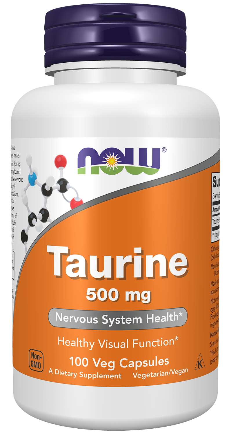 Таурин — условно незаменимая аминокислота, которая не используется для синтеза белка, но в основном встречается в свободном виде в большинстве тканей, особенно в нервной системе. Он функционирует в тканях, стабилизируя клеточные мембраны и способствуя транспорту калия, натрия, кальция и магния в клетки и из них. Таурин помогает генерировать и регулировать нервные импульсы и способствует поддержанию нормального баланса жидкости; он также используется организмом в зрительных путях, а также в мозге и нервной системе, где он действует вместе с глицином и ГАМК в качестве нейромедиатора. Состав
