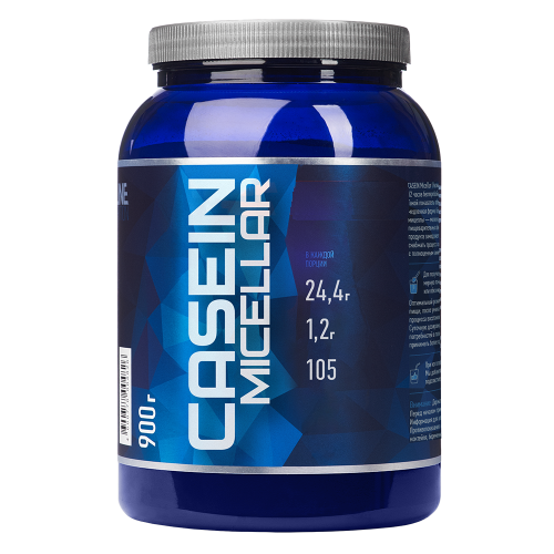 Молочный белок представлен в продукте мицеллярным казеином. Это наиболее медленная форма белка. В отличие от сывороточного протеина, который усваивается в течение получаса, мицеллярный казеин расщепляется на аминокислоты на протяжении 10-12 часов. Попадая в желудочно-кишечный тракт, его молекулы образуют мицеллы — скопления с гидрофобным ядром и гидрофильной оболочкой. Такие образования устойчивы к действию пищеварительных ферментов. В результате усвоение порции казеина растягивается на длительный срок. Это позволяет постепенно выводить в кровоток аминокислоты, долгое время поддерживая там их высокую концентрацию. При условии достаточного энергетического потенциала поступающие в кровь аминокислоты будут направлены на синтез мышечной ткани. Замедленный процесс усвоения казеина обеспечит бесперебойное снабжение этого синтеза строительным материалом.